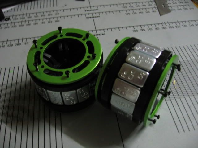 - nas jantes foi colocado lastro de forma a obter um peso final jante+pneu de cerca de 250g a frente e 180g atrás