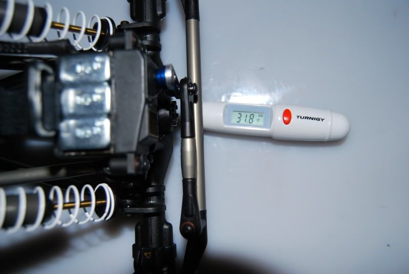 Para isso e para não ter que estar tanto tempo a carregar no acelerador do rádio usei um variador de avião que num rádio de sticks está sempre a trabalhar quando o gatilho está neutral , não tem que fazer isso , eu apenas o fiz porque era um variador que tinha em casa que não uso já que não tenho aviões presentemente, fiz isto durante 30 minutos aproximadamente , 15 min para frente e 15 min para trás , fui controlando a temperatura que nunca passou dos 31-33 graus o que me parece muito aceitável e até bastante abaixo do esperado .