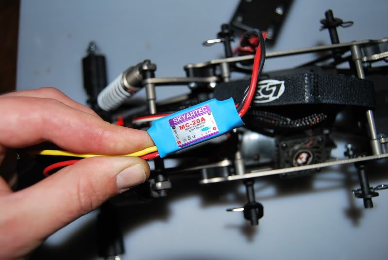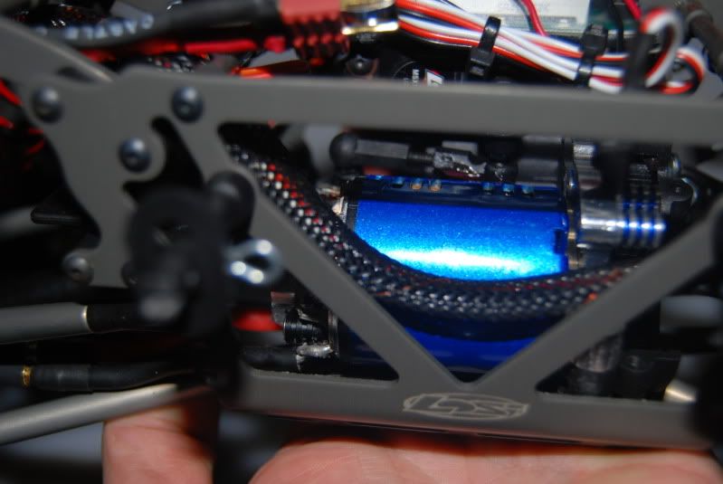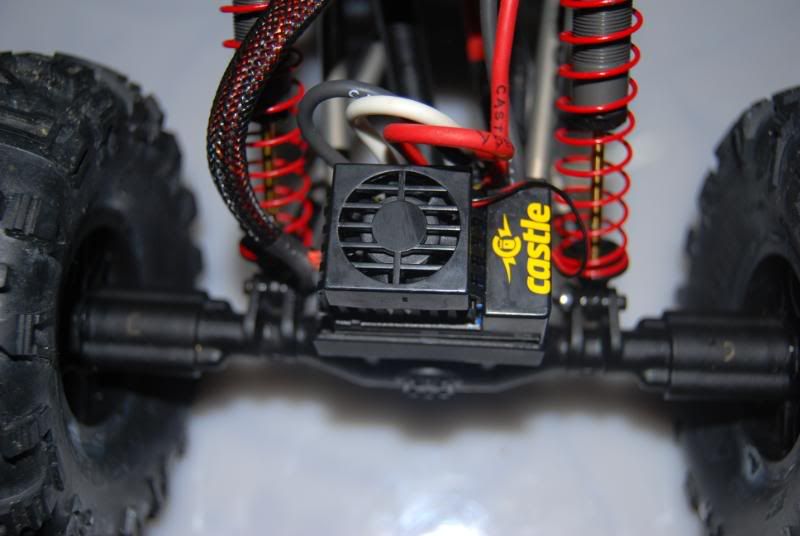 Neste campo muito se diz e muito se escreve sobre a melhor electrónica para o lcc , na teoria o carro foi feito para motores brushless 17.5T ou 21.5T mas a minha opção nunca foi essa por teimosia , depois de experimentar sem sucesso um titan 21t e de queimar um integy 35T optei por usar um integy v10 pro 80T que me resolveu com distinção o problema , o motor não ultrapassa os 30-40 graus e proporciona cerca de 50 minutos de utilização com uma lipo de 1500mah 3s , agora a velocidade de ponta diminui bastante mas acho que só os americanos é que gostam de andar a 50km/h com um crawler, o único upgrade que fui obrigado a comprar um suporte de motor em alumínio porque com a embraiagem praticamente bloqueada o motor quando em esforço sai do sitio com o suporte incluído em plástico e destrói a cremalheira , reparem que serve de suporte e tambem de dissipador de calor , é uma boa compra .