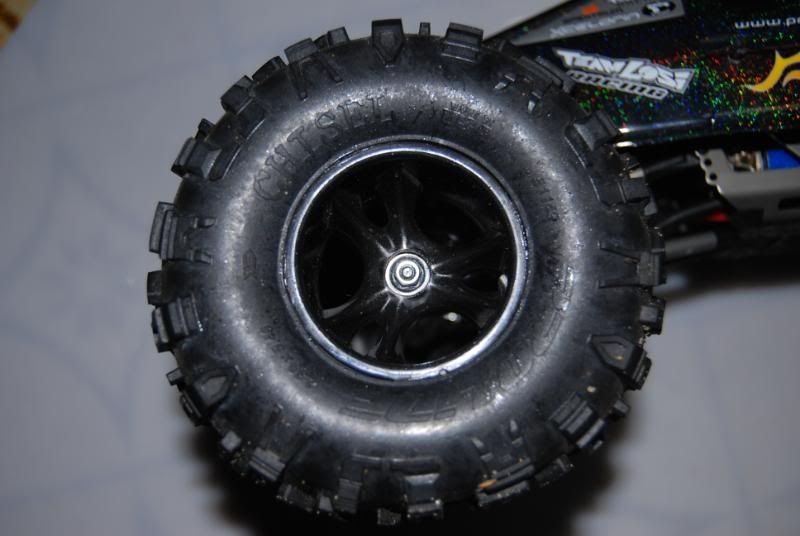 Neste capitulo , as jantes que vem no kit não me agradaram tanto pela qualidade de acabamentos como e principalmente pelo cromado que não é do meu gosto apesar de os beadlocks serem de excelente qualidade pelo que optei por usar umas RPM de colar os pneus , depois de colocado o lastro que achei conveniente fiquei com 354g à frente e 240g atrás já com espumas de memória de pro-line e pneus .