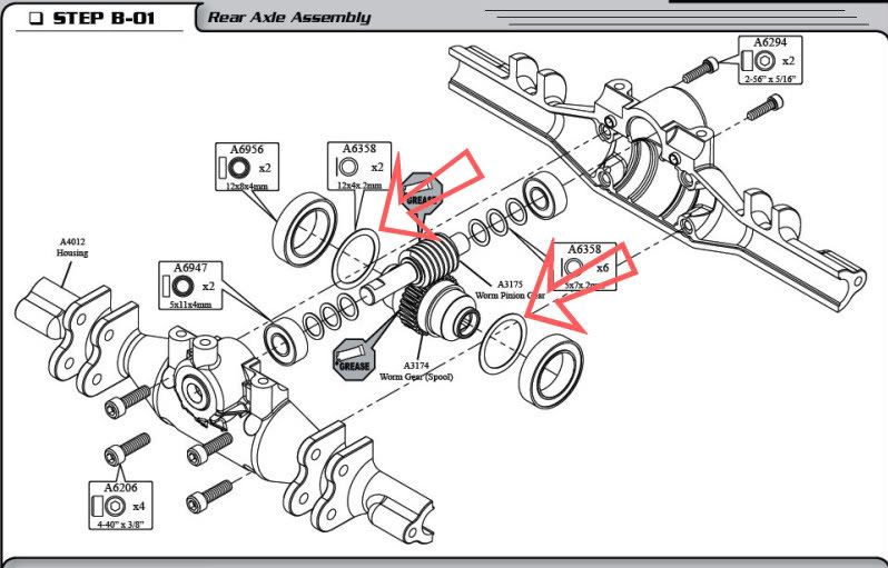 a) se observar no manual , entre os dois rolamentos que se observam em cima e o spool existem duas anilhas , uma de cada lado , agora o que acontece é muito carros trazem quatro anilhas pelo que se deve retirar os rolamentos e verificar , se lá estiverem duas de cada lado tira-se apenas uma , isto porque esta forma de diferencial com parafuso sem fim tem que estar um "pouco solto" para que não aqueça em demasia , coisa que acontece mesmo assim. Atenção não confundir as anilhas do spool com as 3 anilhas do parafuso sem fim , essas devem permanecer onde estão.